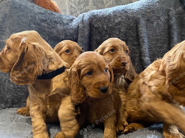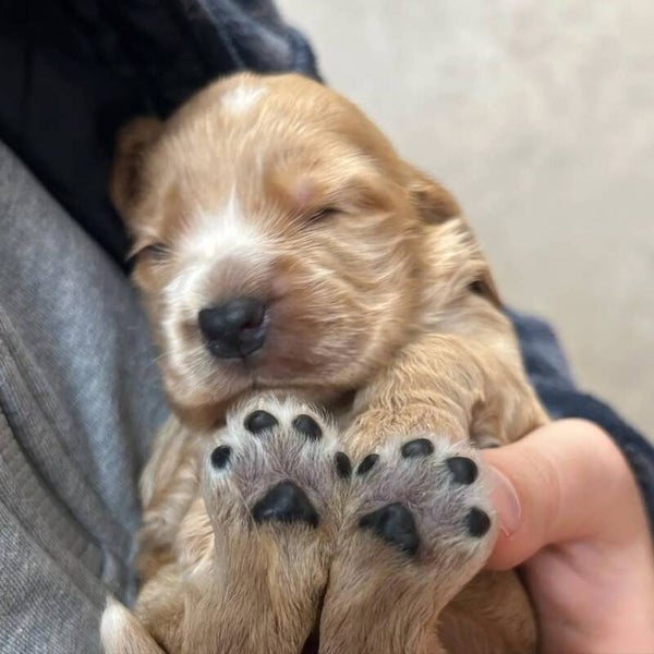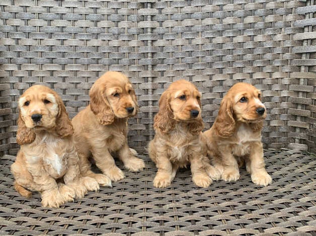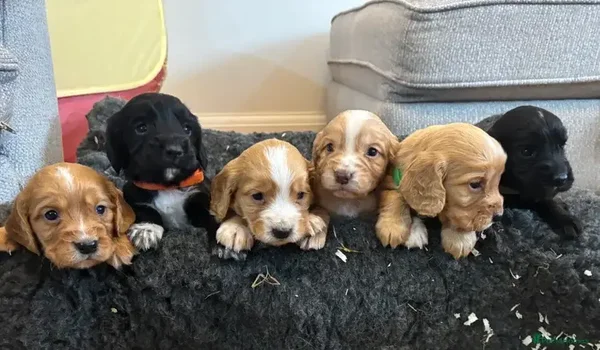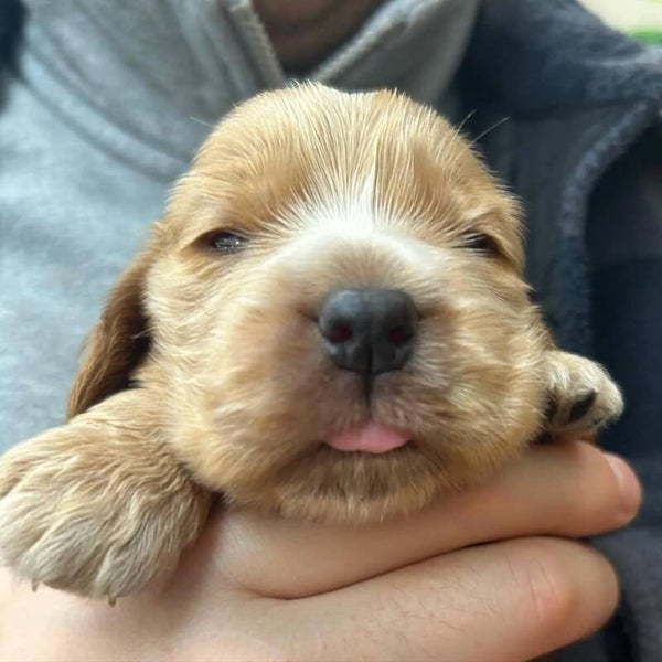 I nostri Cocker Spaniel sono la definizione di "allegri". Con i loro occhi pieni di sentimento e la coda che scodinzola costantemente, sono pronti a diventare la tua ombra. Hanno un eccellente potenziale di richiamo e sono altamente motivati da dolcetti e gioco. Sono stati sverminati e verranno consegnati con una coperta profumata dalla mamma per facilitare la transizione.