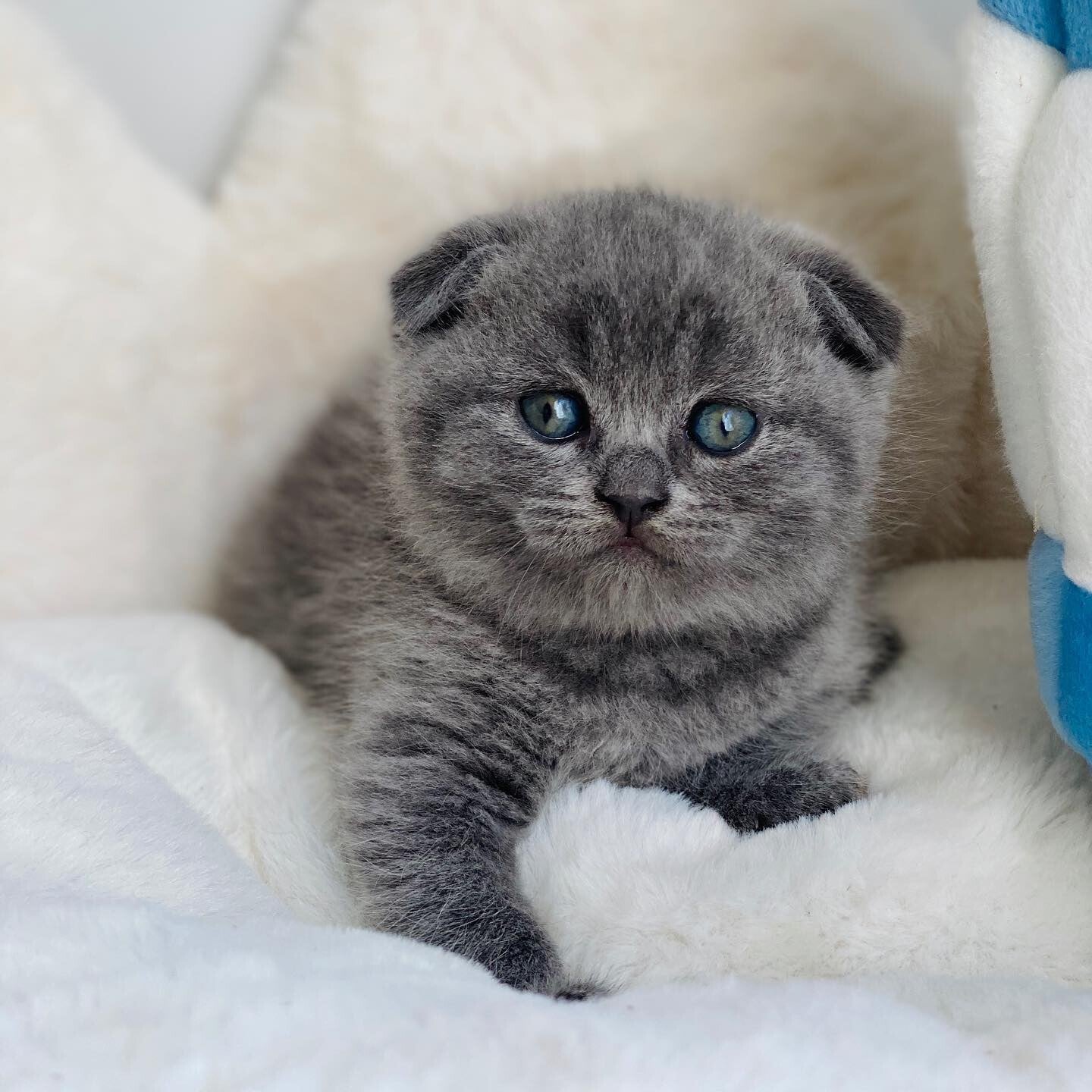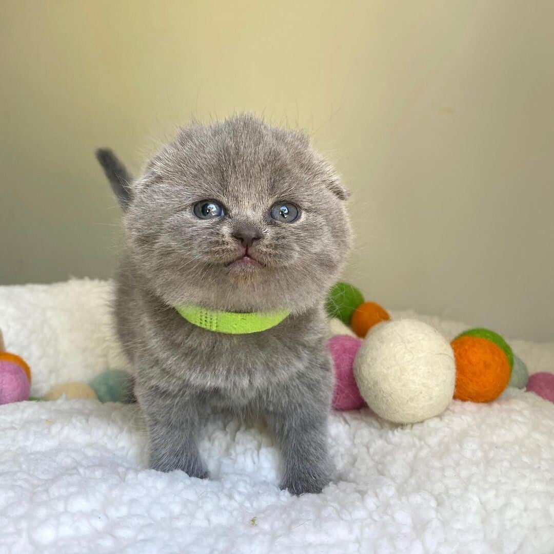 Tutta la personalità e il pelo soffice di un Fold, ma con orecchie tradizionali (e un prezzo più accessibile!).