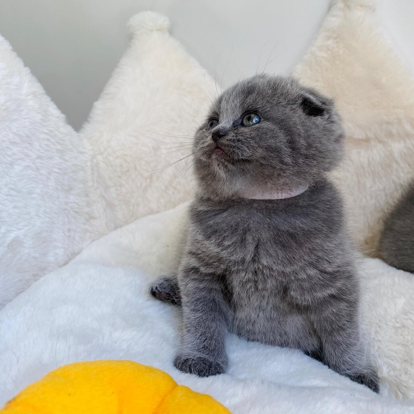 Non accoppiamo mai un Fold con un altro Fold. I nostri gattini sono il risultato di un accoppiamento Fold x Straight/British Shorthair per garantire il più sano sviluppo possibile di cartilagini e articolazioni.