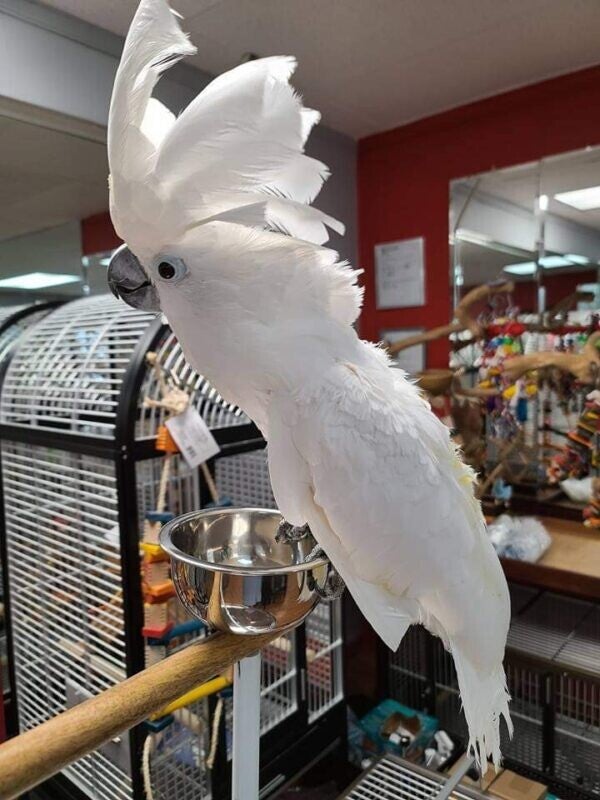 Il cacatua Ombrello ha una caratteristica cresta bianca che si solleva come un ombrello, che lo differenzia dagli altri cacatua bianchi. Adotta il tuo pappagallo oggi stesso e ricevilo a domicilio.