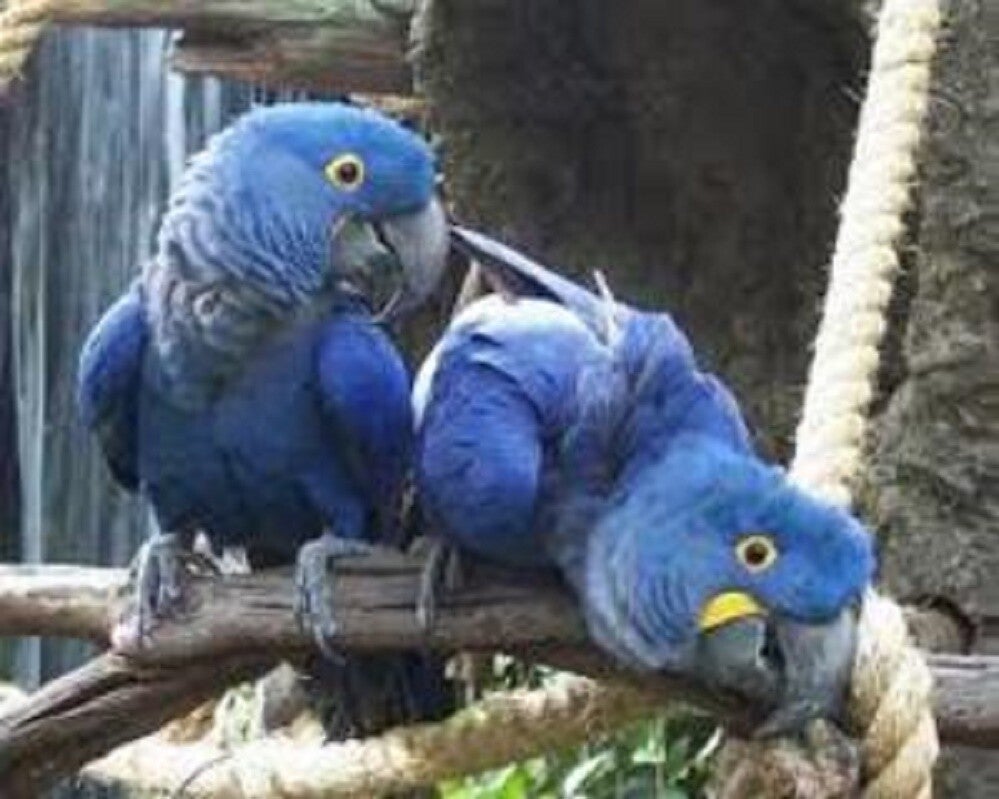La splendida colorazione blu cobalto e le dimensioni imponenti dell'Ara Giacinto attireranno l'attenzione di chiunque. Il giallo brillante intorno agli occhi, alla base e agli angoli del becco fa sembrare la più grande delle specie di Ara un sorriso perenne. Questo è un pappagallo per chi può permettersi un budget elevato e ha spazio a disposizione.